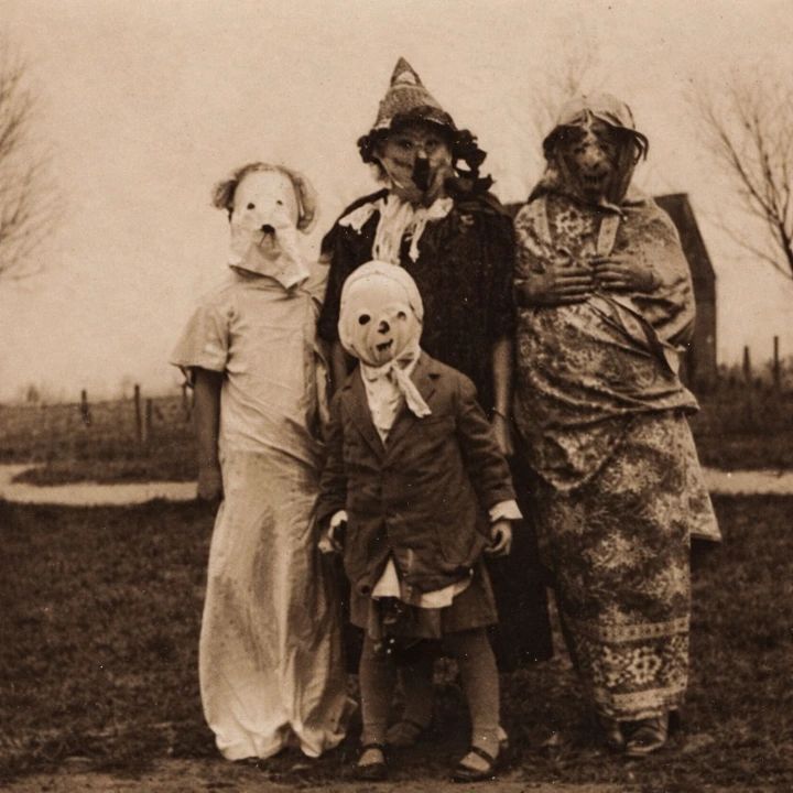Otra forma de espantar a los malos espíritus era por el uso de disfraces tenebrosos, los cuales emulaban la costumbre de vestirse con ropas de otras personas o bien ropas tenebrosas (las cuales a su vez imitaban el uso de pieles ensangrentadas por los druidas en Samhain) para así confundir y atemorizar a los indeseables espíritus maléficos y no se quedaran cerca o en el hogar. La tradición dice también que, mientras los espíritus eran guiados por las linternas, se les dejaba a su paso ofrendas de alimentos o frutas acarameladas los cuales eran retirados por ellos o bien por los druidas quienes lo ofrecían en ofrenda sagrada en señal de agradecimiento por las buenas cosechas; sin embargo, si en alguna ocasión pasaba un espíritu maléfico y no encontraba el tributo lanzaba un maleficio a la casa y a sus moradores, tradición que con el paso de los años derivo en el famoso “trick or treat” (truco o treta), la cual se le atribuyó a un espíritu en especial que vagaba entre el mundo espiritual y el real, sobre todo aquella noche y golpeaba las puertas haciendo la pregunta… era ni más ni menos que Jack O’Lantern, quien a la larga se vio reemplazado por los niños pidiendo caramelos disfrazados y otros tantos personajes maléficos añadidos por el cine o leyendas urbanas.