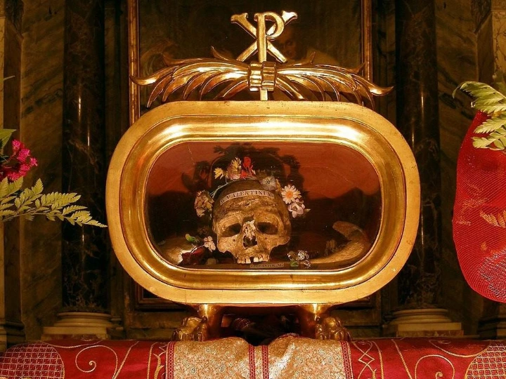 *Reliquias de San Valentín en la Iglesia de Santa Maria in Cosmedin (Roma)