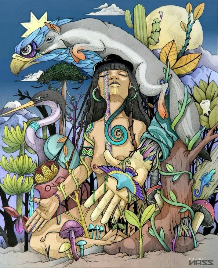 Más al sur, pueblos como los mapuches articulaban su espiritualidad en torno al itrofill mongen (equilibrio, respeto, cuidado y conservación de todas las formas de vida de manera integral e interdependientes entre sí) y ciclos naturales que estructuraban ceremonias comunitarias ligadas a renovación y continuidad (Bengoa).